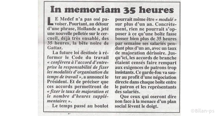 - Hollande s’attaque à la durée légale du travail – source – capture – 2007