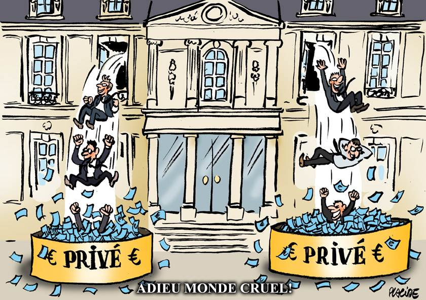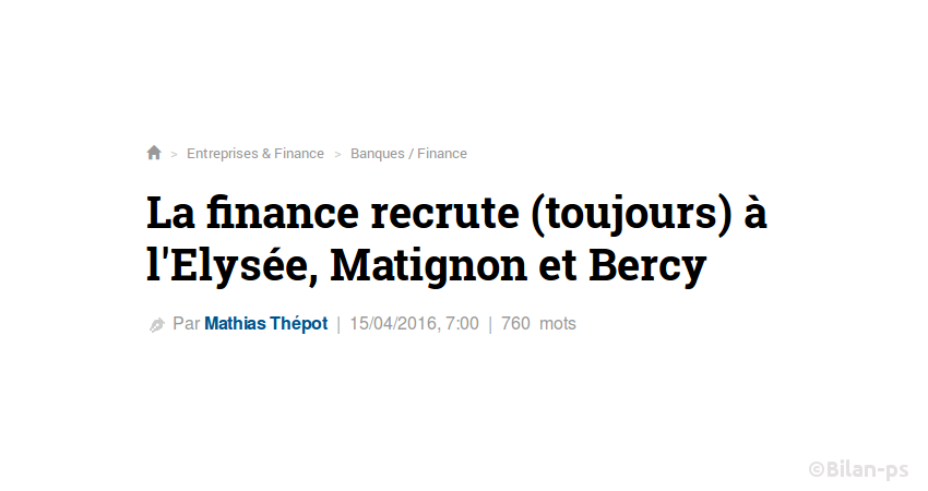 - Pantouflages : La finance recrute à l’Elysée, Matignon et Bercy – source – capture – Dessin