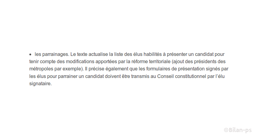 - Publication complète de la liste des parrains (contrôle resserré des partis) – capture