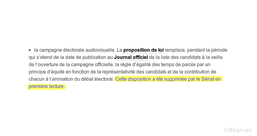 - [supprimé au Sénat] Fin du principe d’égalité du temps de parole dans les média – capture