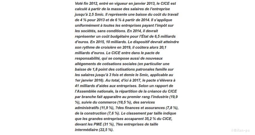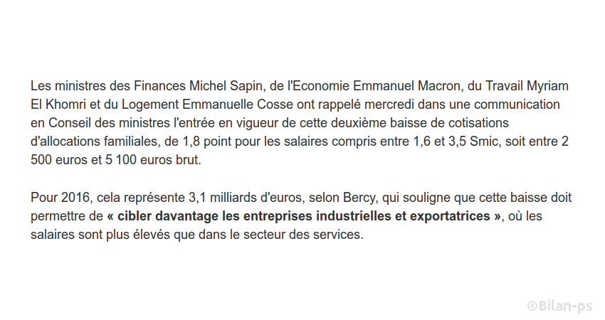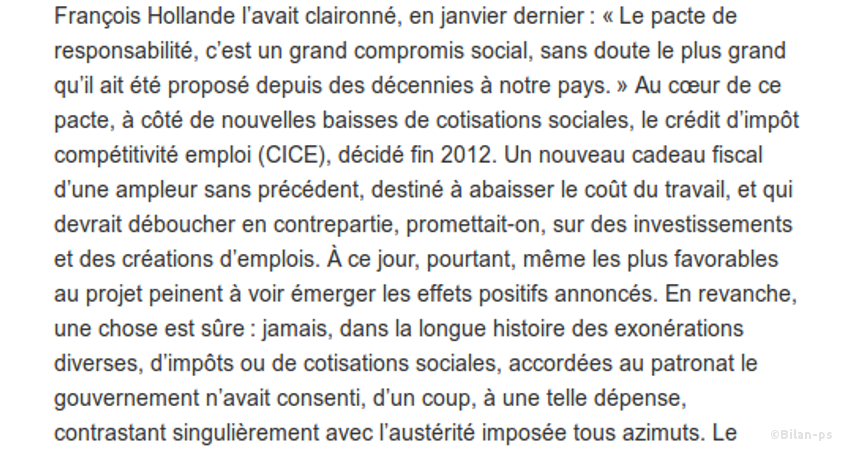 - Pacte de responsabilité : +3,1 milliards de cadeau au patronat en 2016 – source – capture