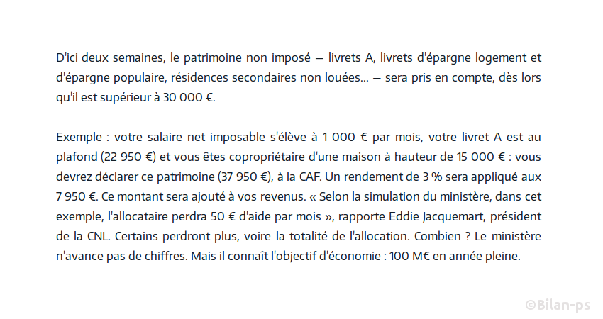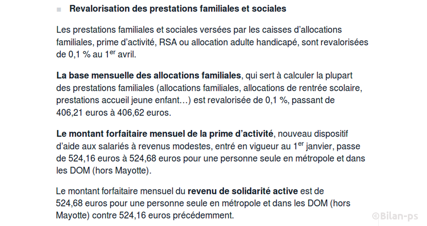 - Revalorisation des prestations familiales et sociales de… 50 centimes – source – capture