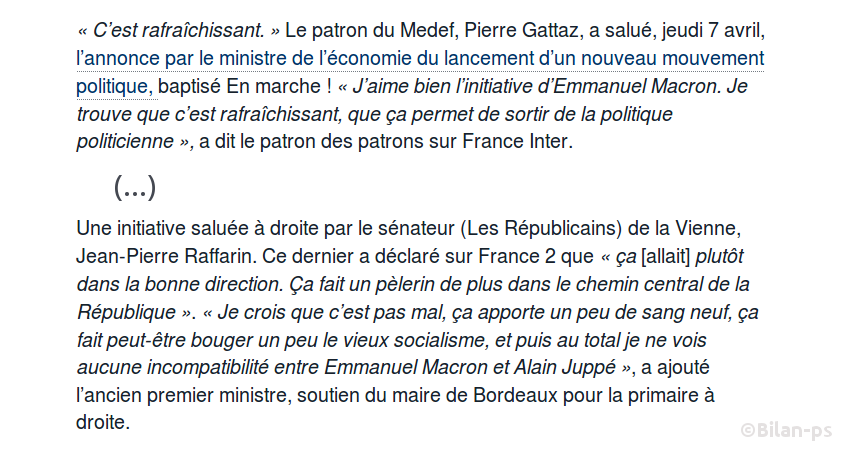 - En marche d’E. – Macron hébergé et domicilié à l’Institut Montaigne – source – capture – soutiens