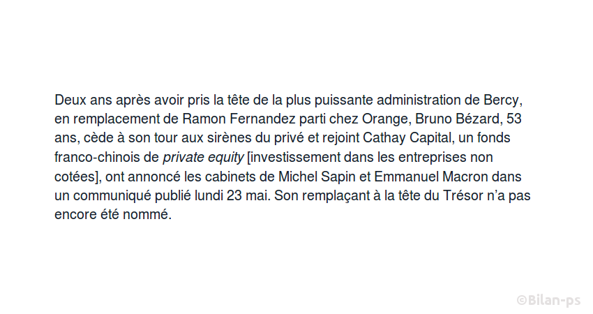 - B. Bézard quitte la direction du Trésor pour un fonds d’investissement – source – capture