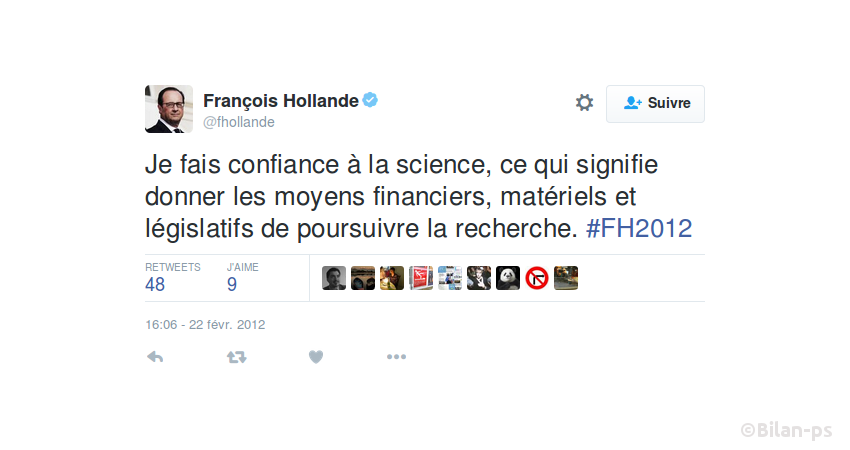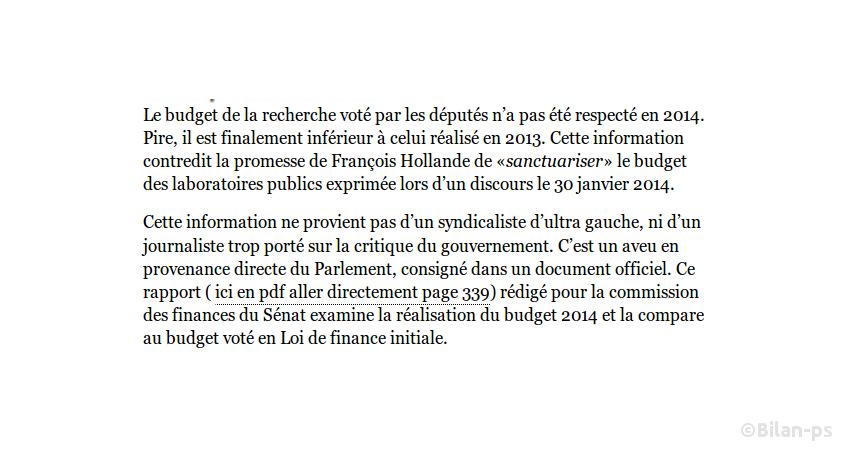 - Promesse de relever à 3% du PIB le financement de la recherche non tenue – source – capture