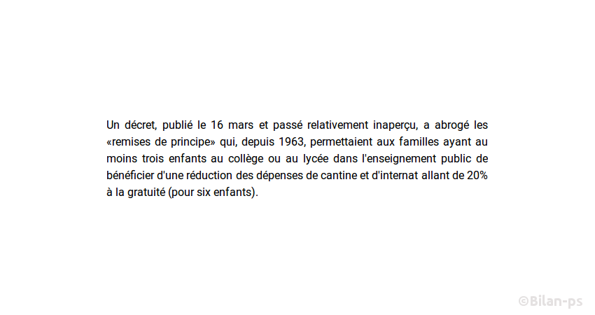 - Familles nombreuses : fin des aides pour la cantine – source – capture