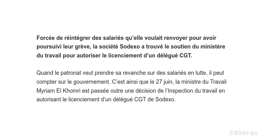 - Sodexo : El Khomri autorise le licenciement d’un délégué CGT pour fait de grève – source – capture