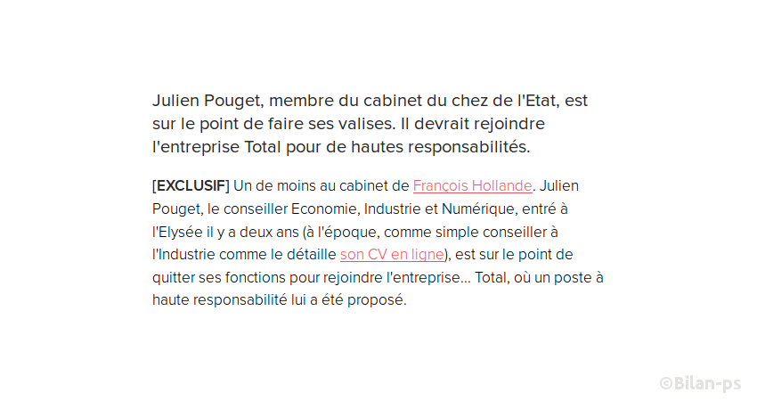 - J. Pouget, conseiller Économie, Industrie et Numérique quitte l’Élysée pour Total – source – capture