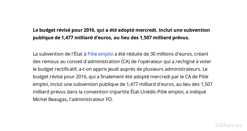 - L’État ampute le budget de Pôle emploi de 30 millions d’euros – source – capture