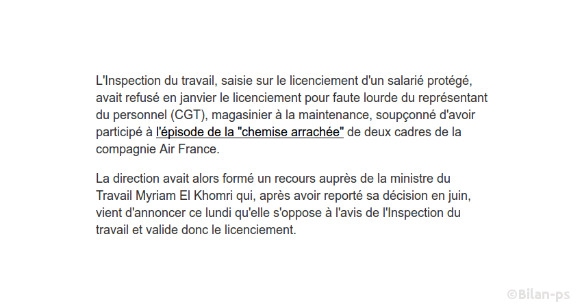 - "Chemise" d’Air France : El Khomri valide le licenciement d’un délégué CGT – source – capture – contexte
