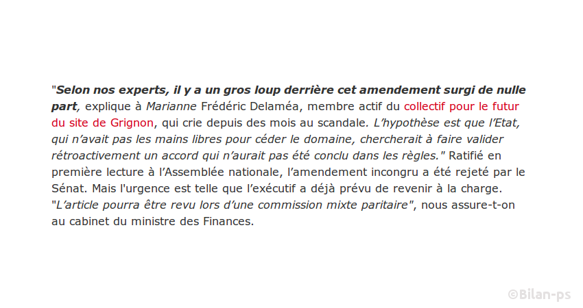 - Cavalier législatif douteux pour vendre le domaine de Grignon – source – capture