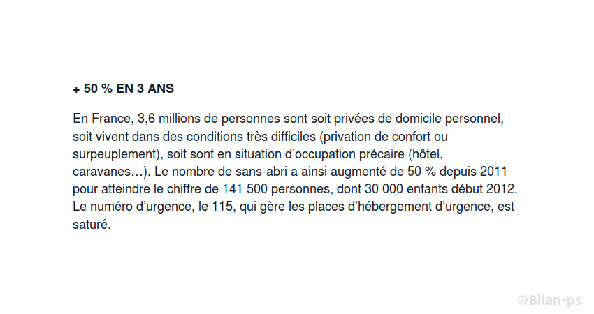 - Hausse de 50% du nombre de sans abris entre 2011 et 2014 – source – capture
