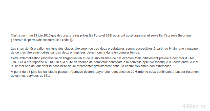 - Code de la route : transfert de l’examen au privé, et redevance de 30€ – source – capture