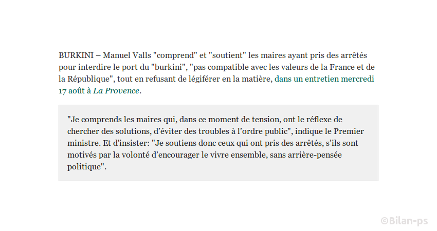 - Islamophobie : Soutien de Valls aux arrêtés "anti-burkini" – source – capture