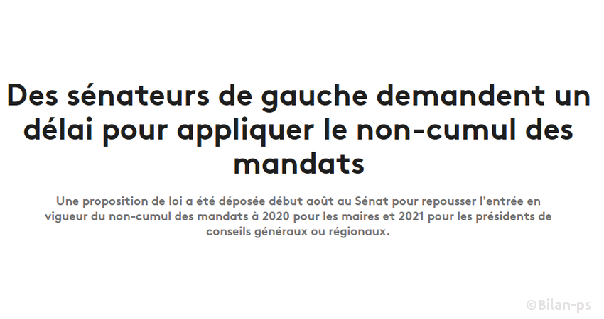 - 11 sénateurs socialistes veulent repousser le non-cumul à 2021 – source – capture 1 – capture 2
