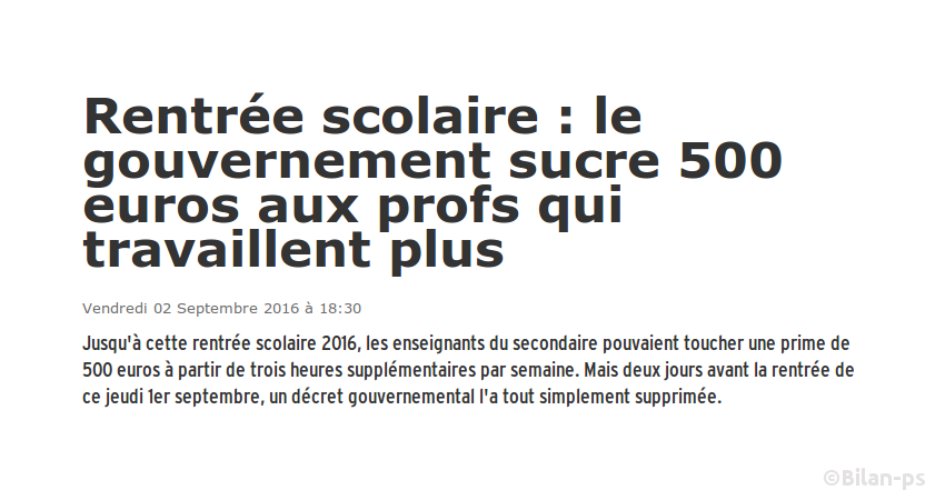 - Profs : Suppression d’une prime de 500€ deux jours avant la rentrée – source – capture