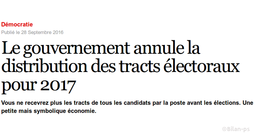 - Annulation par le gouvernement de la distribution des tracts électoraux pour 2017 – source – capture
