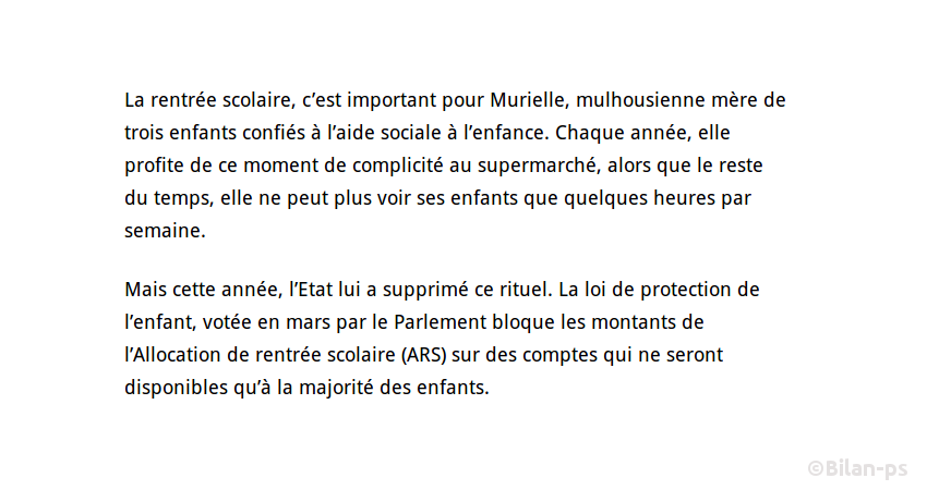 - Non versement de l’allocation de rentrée pour les enfants confiés à l’ASE – source – capture