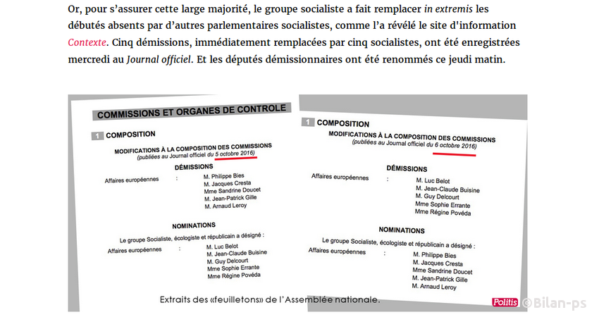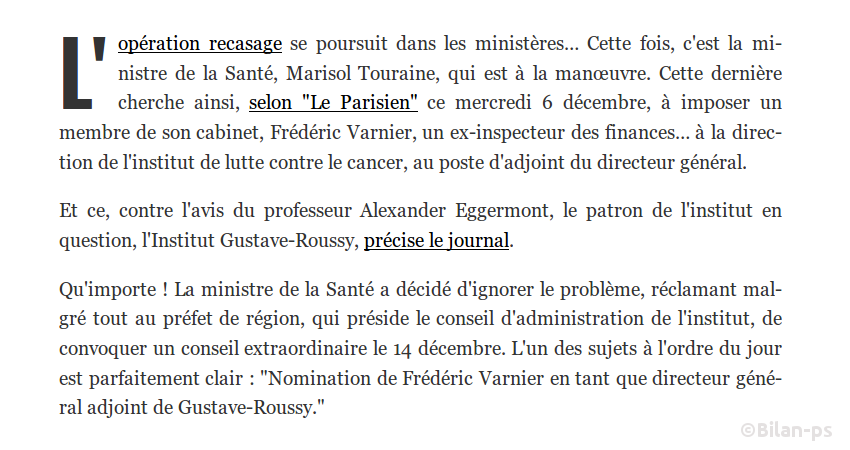 - Nominations de complaisance (ex : compagne d’A. Morelle) – source – capture