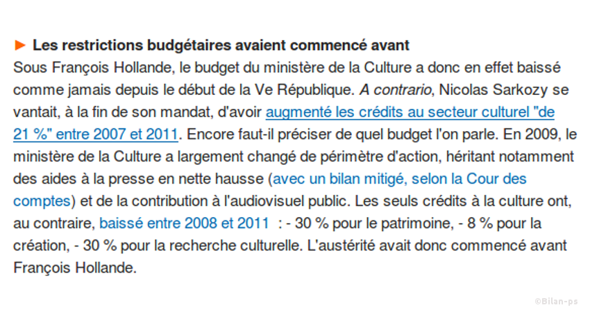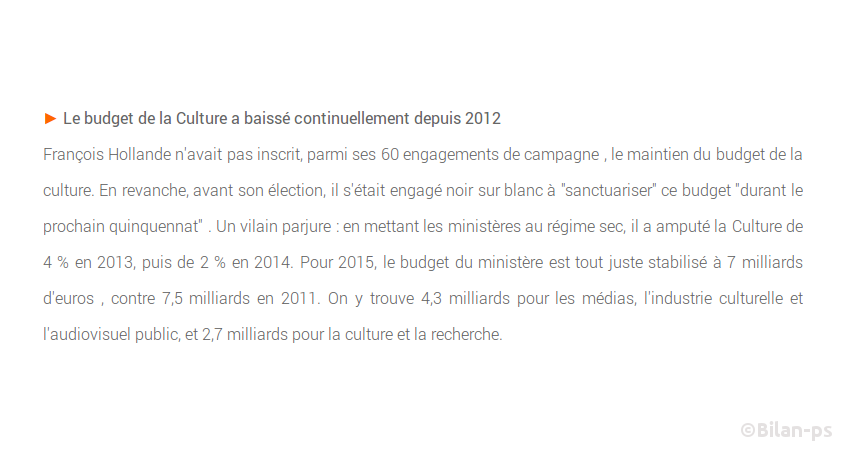 - Retour sur l’engagement à sanctuariser le budget de la Culture – source – capture
