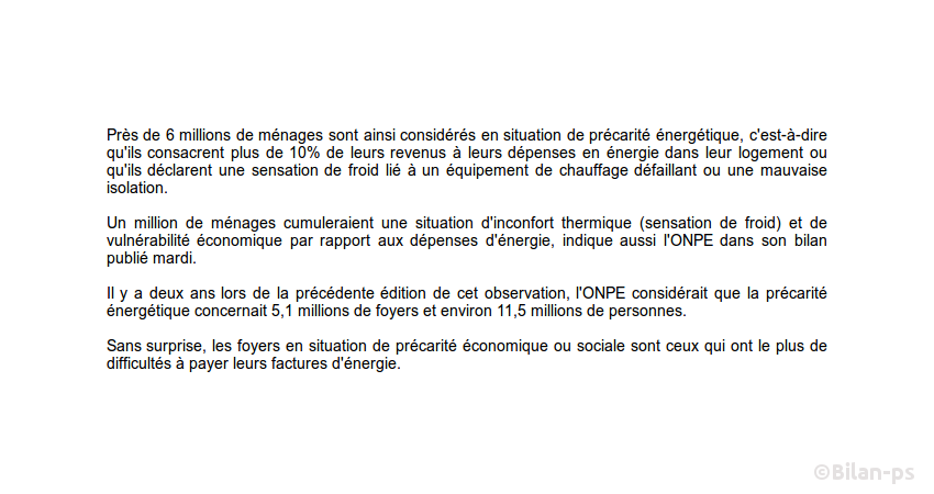 - Hausse du nombre de ménages (+900 000) en situation de précarité énergétique – source – capture