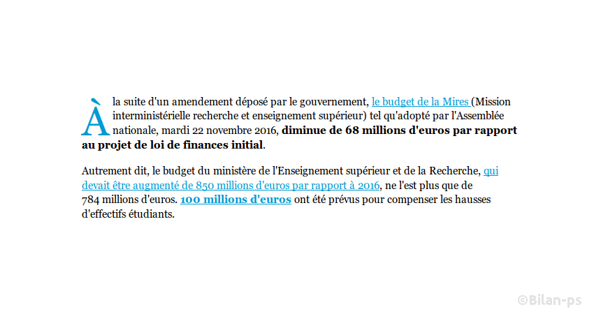 - Amputation de 68M€ du budget 2017 de l’enseignement supérieur et la recherche – source – capture