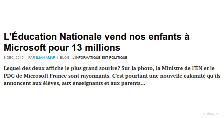 - Le MEN enterre le Logiciel Libre et « vend » les élèves à Microsoft pour 13 M€ – source – capture