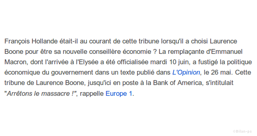 - Laurence Boone, chef économiste à Bank of America, nommée conseillère à l’Élysée. – source – capture
