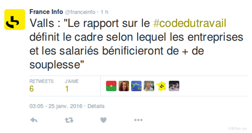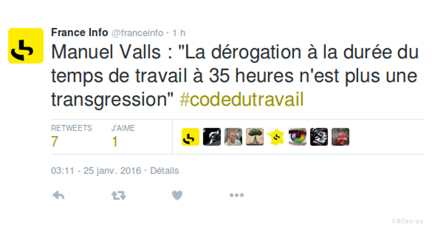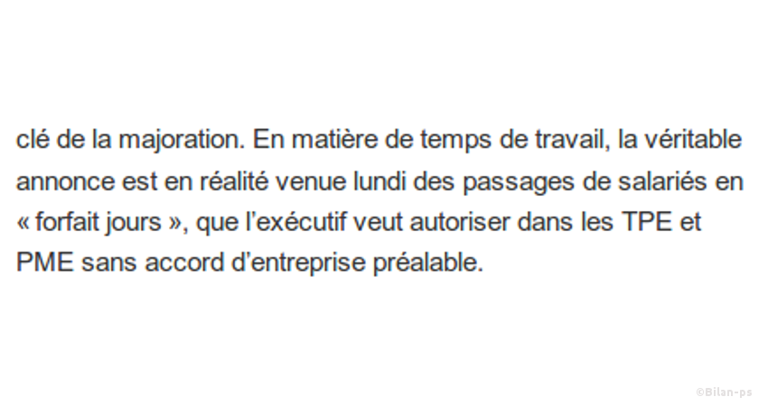 - [Envisagé] « Forfait jours » pour les salariés (= fin des heures supp.) – source – capture – vidéo