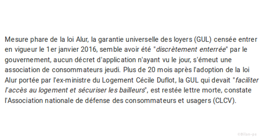 - Loi Alur : enterrement discret de la Garantie Universelle des Loyers – source – capture