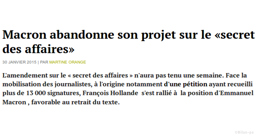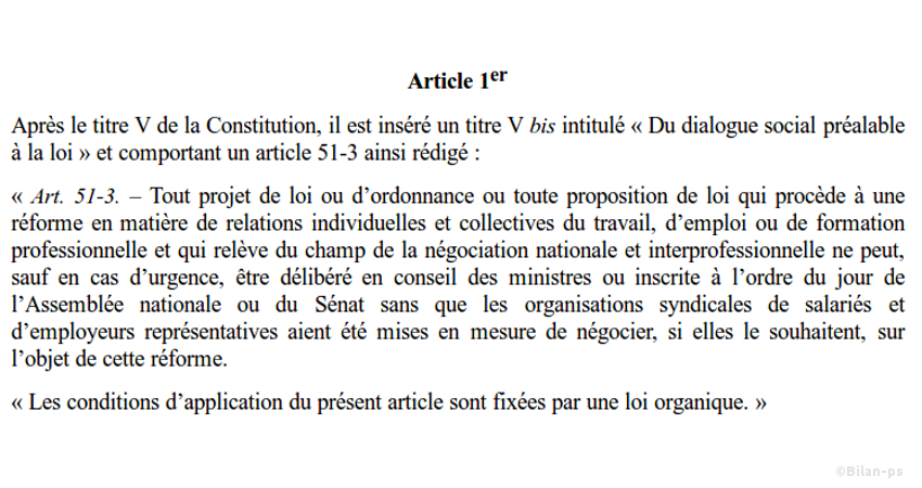 - Abandon du projet de loi relatif à la démocratie sociale – source – texte – capture