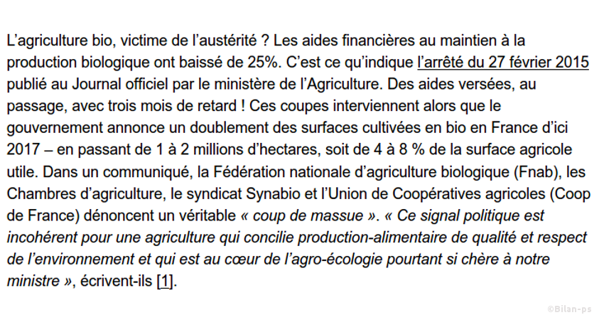 - Réduction de 25% des aides au maintien dans l’agriculture biologique – source – capture
