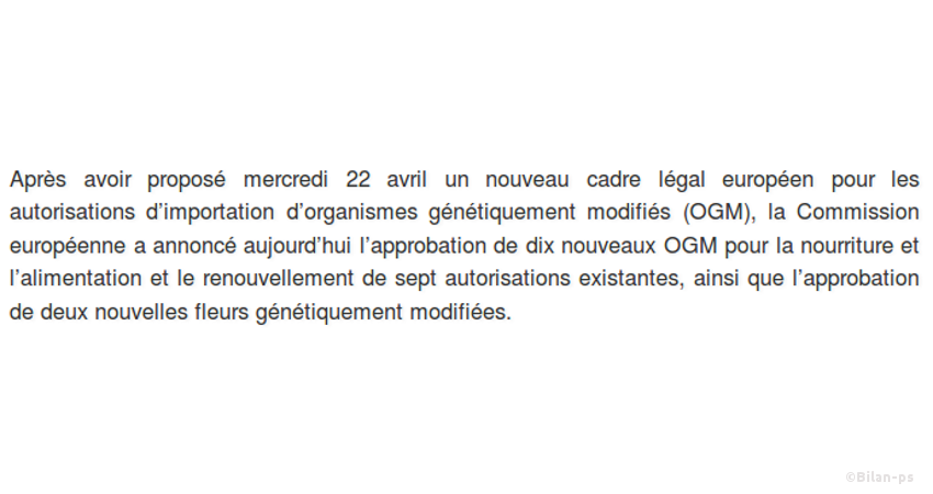 - Silence sur les extensions d’autorisation d’OGM – source – capture