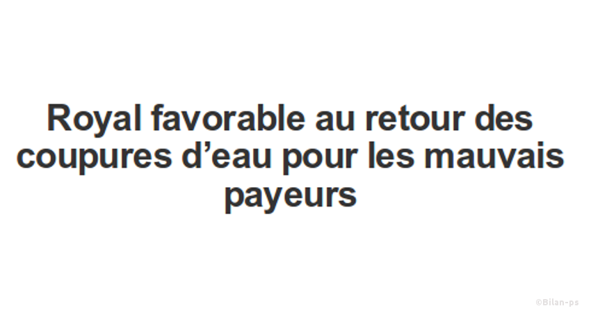 - Royal favorable au retour des coupures d’eau pour les mauvais payeurs – source – capture