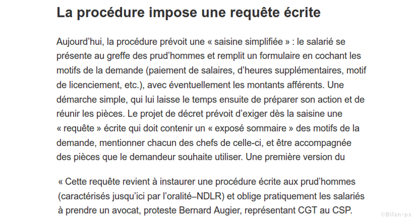 - Loi Macron : vers un accès restreint aux prud’hommes – source – capture