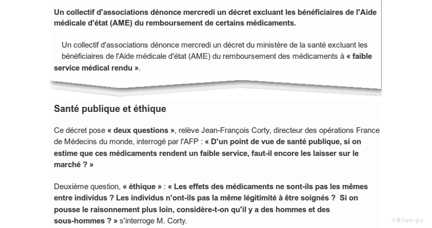 - Les bénéficiaires de l’AME privés de remboursement – source – capture