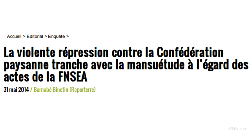 - Répression pour la Confédération Paysanne, mansuétude pour la FNSEA – source – capture
