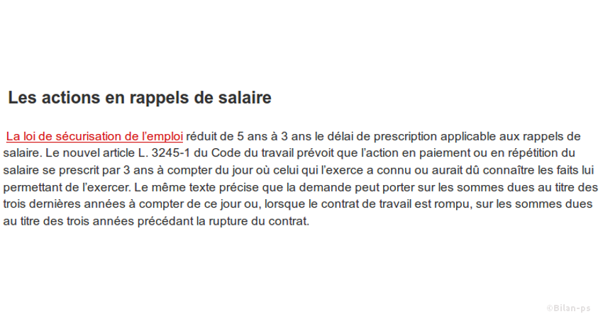- La prescription sur les rappels de salaire passe de 5 à 3 ans – source – capture