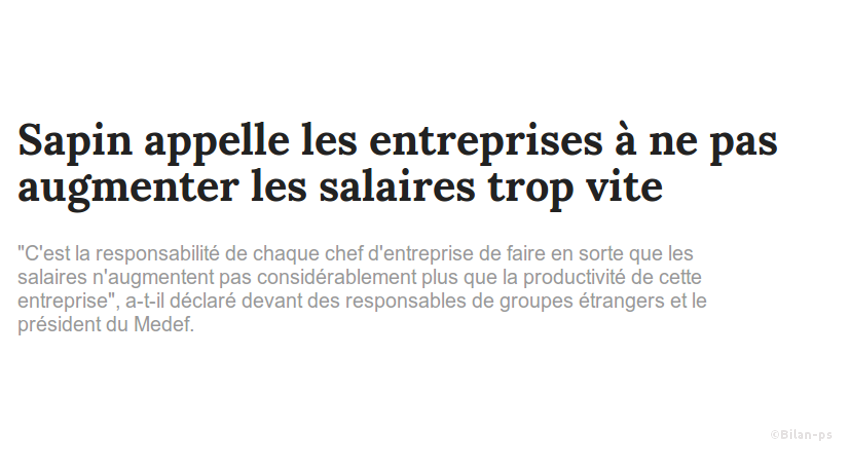 - Sapin appelle les entreprises à ne pas augmenter les salaires trop vite – source – capture