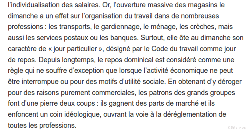 - Généralisation du travail du dimanche, – source – capture