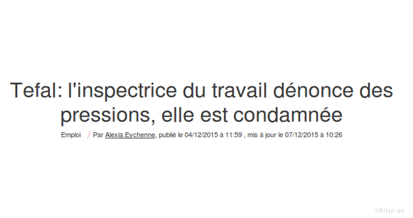 - Condamnation d’une inspectrice du travail (Téfal) – source – capture