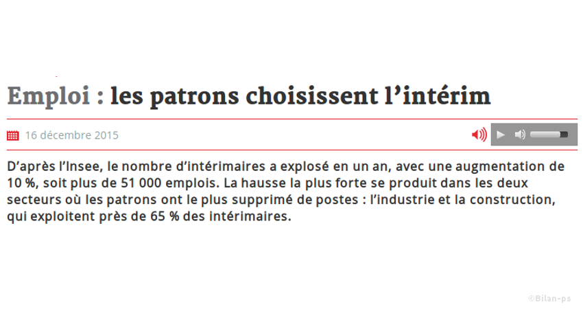 - Précarité : Explosion de l’intérim : +10% en un an – source 1 – source 2 – capture