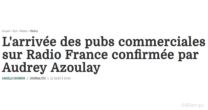 - Introduction de la publicité commerciale sur Radio France – source – capture