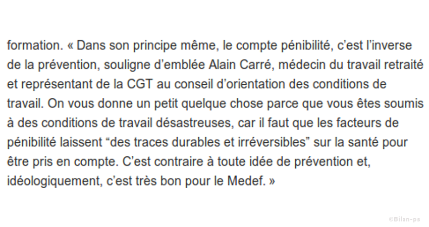 - Compte pénibilité, l’inverse de la prévention – source – capture