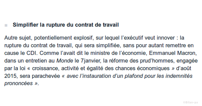 - La rupture du contrat de travail sera simplifiée – source – capture