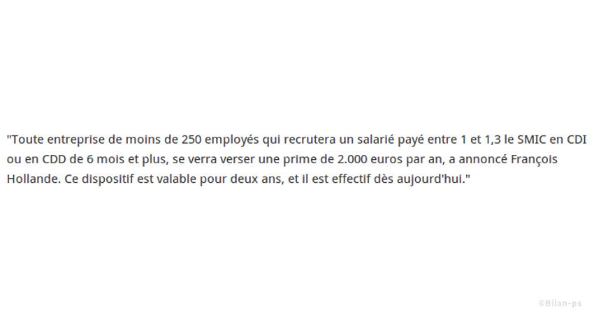 - Nouveau cadeau au patronat : prime de 2.000 € par an et par embauche pour les PME – source – capture